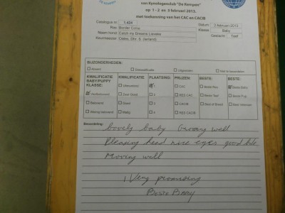 19 januari 2013 K.V Waalwijk e.o. Yvke 4 maanden oud op haar eerste dogshow op het Brabants Rashondenfestival